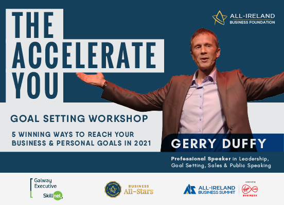 In a former life Gerry had a different business to what he does now and he was terrified of public speaking. In 2005 a work presentation arrived at his door but such was his fear of public speaking, he had to go to a hypnotist to address an audience of 4 people. Since he has overcome that fear, he has set up a speaking and training business and in the past 10 years has delivered over 1,500 presentations. Clients who have hired him include Facebook, Google, SAP, Sales Force, Medtronic, Workday, Hewlett Packard and British Gas. He has also authored three books including THE GOAL GETTER- ‘35 Different Ways to Reach Your Goals.’