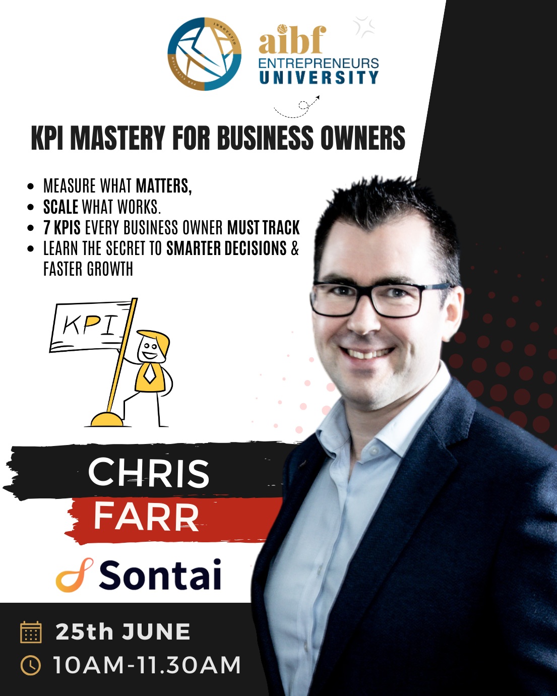 Join AIBF’s exclusive Masterclass with Chris Farr and learn the KPIs every business owner needs to track to scale smarter, not harder.